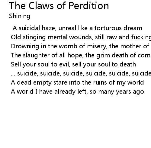 | Old stinging mental wounds, still raw and fucking bleeding | |