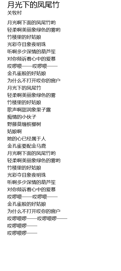 | [00:24.860] | 月光啊下面的凤尾竹哟 |