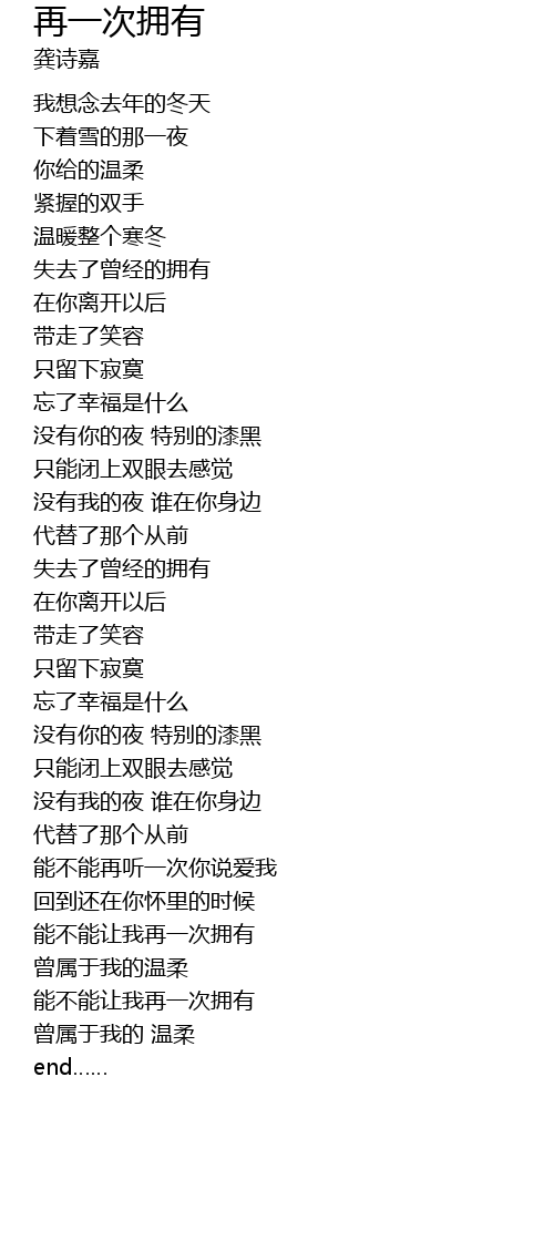 | [00:55.700] | shī qù le céng jīng de yōng yǒu |