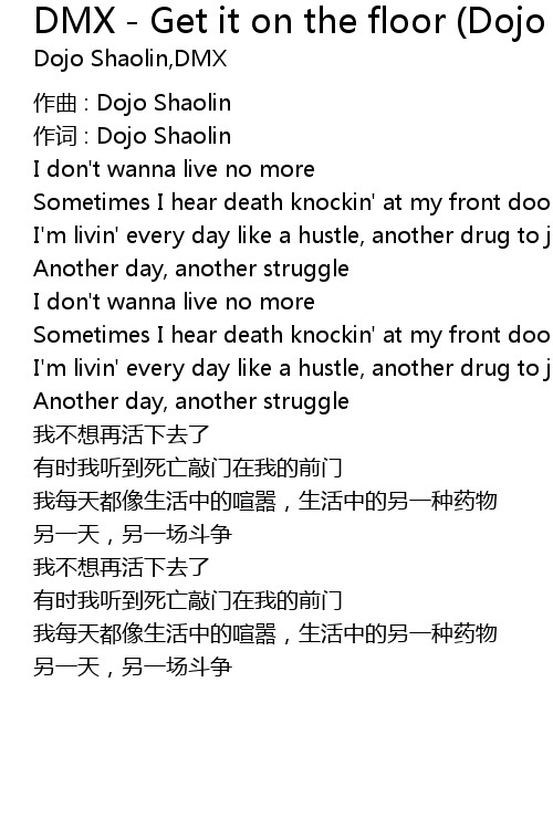 | Song | DMX - Get it on the floor (Dojo Shaolin Remix) |