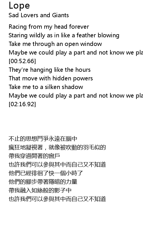 | [00:37.57] | Staring wildly as in like a feather blowing |