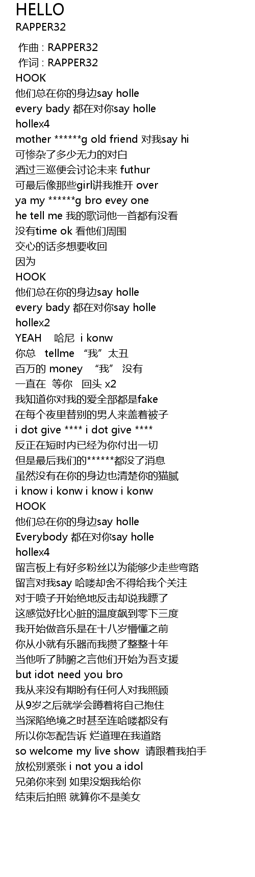 | [00:01.000] | 作词 : RAPPER32 |