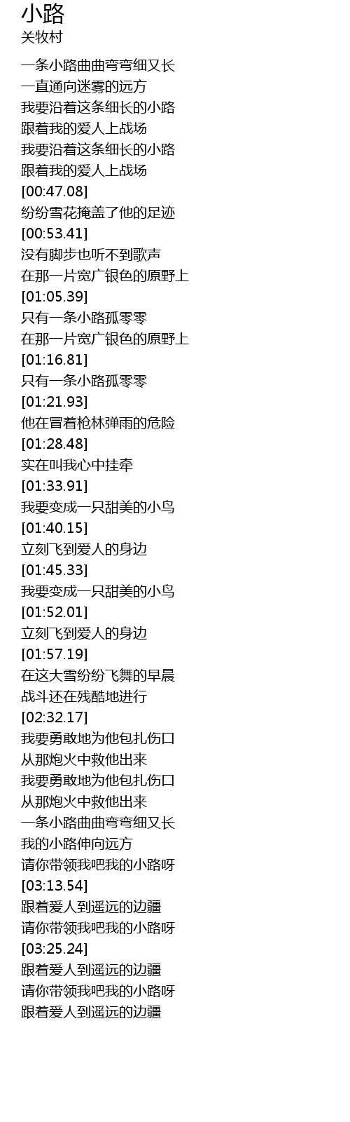 | [03:07.73] | 请你带领我吧我的小路呀 |