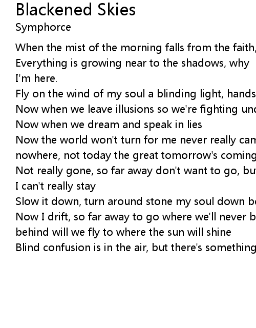 | Now when we leave illusions so we're fighting under blackened skies. | |