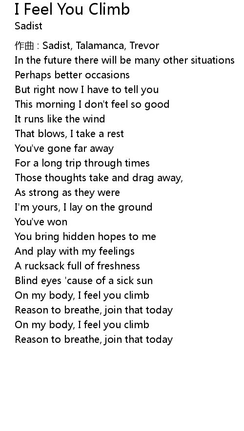 | On my body, I feel you climb | |
