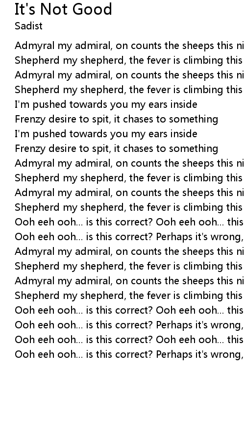 | Ooh eeh ooh... is this correct? Ooh eeh ooh... this is not good | |
