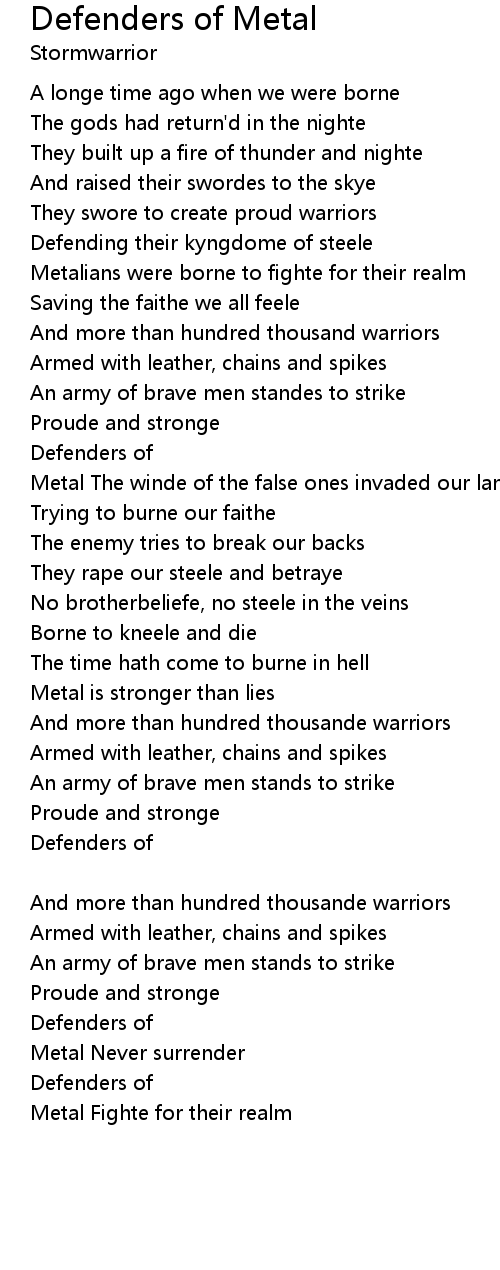 Defenders of Metal Lyrics