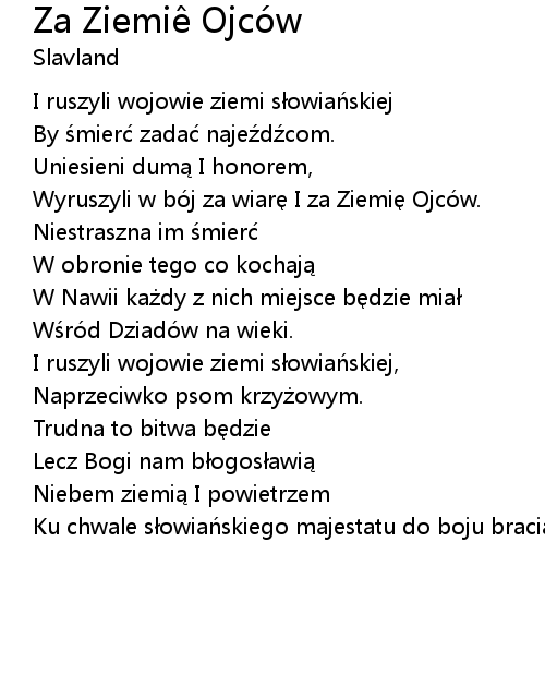 | Ku chwale słowiańskiego majestatu do boju bracia! |