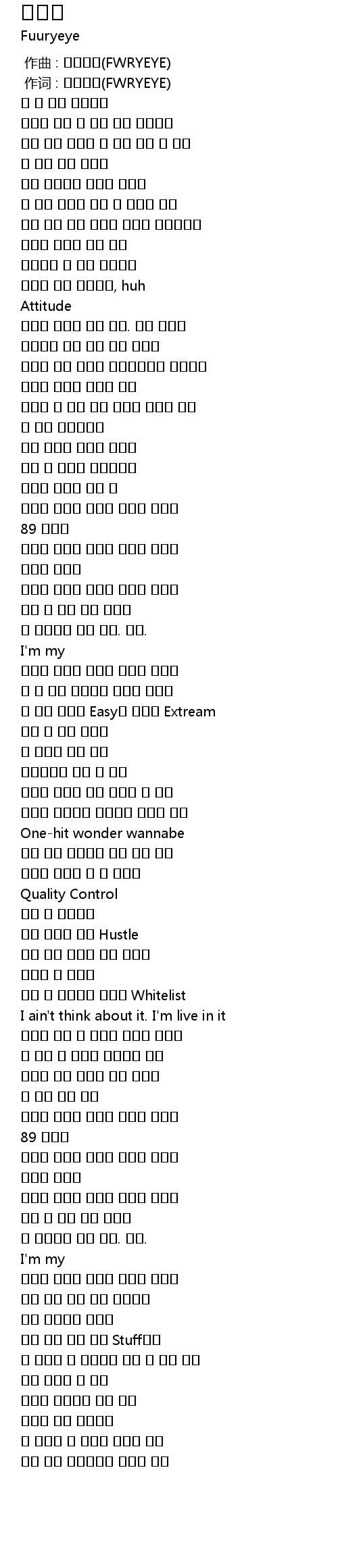 | [00:01.000] | 作词 : 퓨리아이(FWRYEYE) |