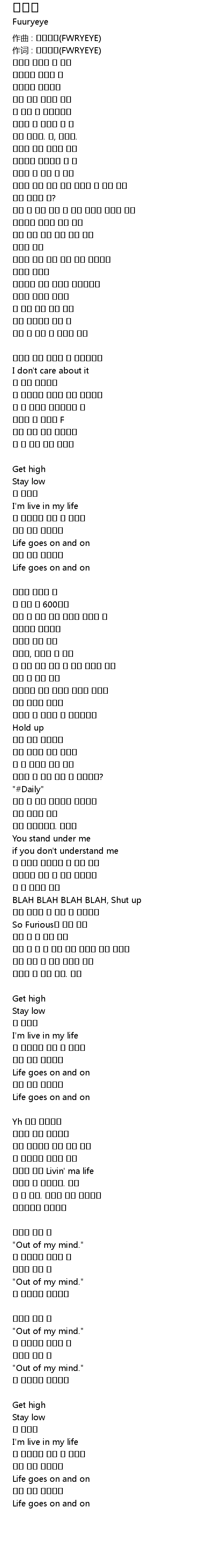 作词 : 퓨리아이(FWRYEYE) |