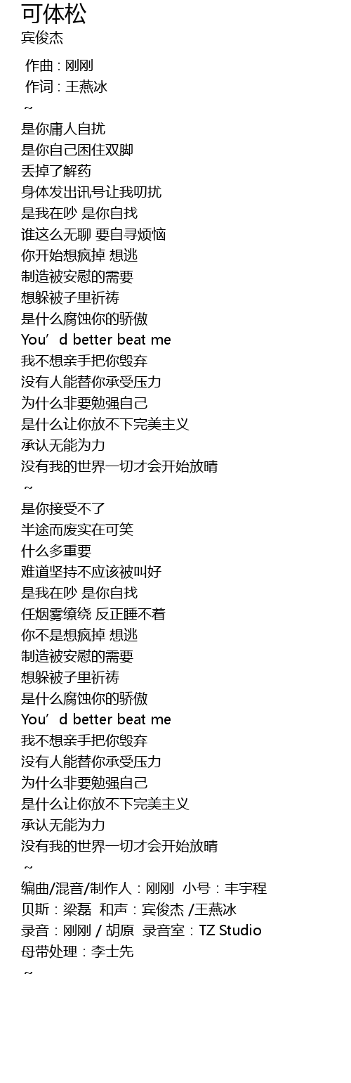 | [04:00.0] | 编曲/混音/制作人:刚刚 小号:丰宇程 |