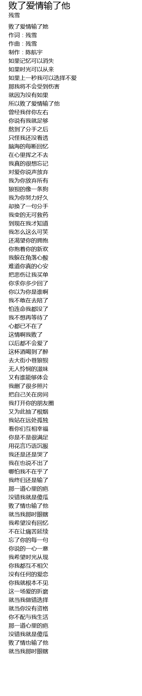 | 作词:残雪 | |
