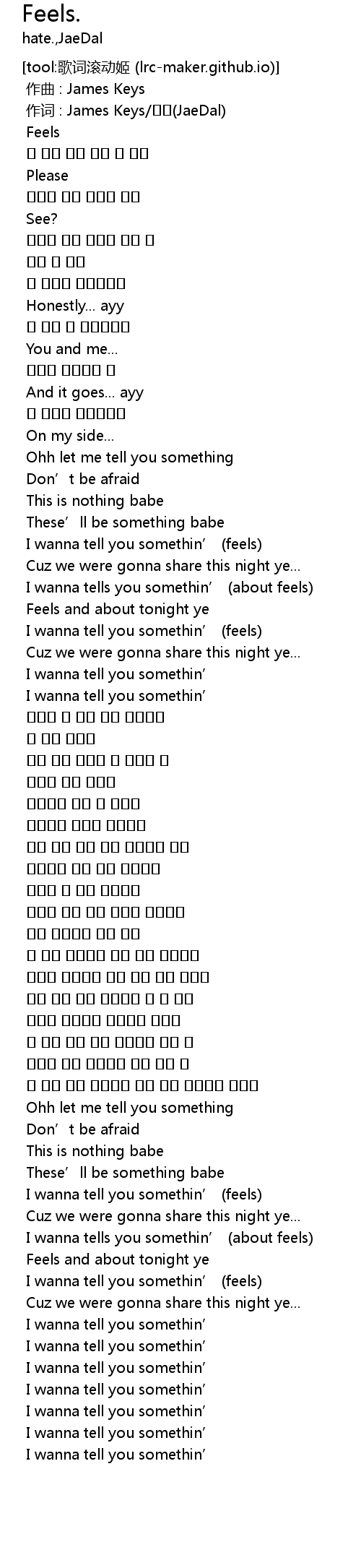 | [01:12.203] | I wanna tell you somethin’ (feels) |