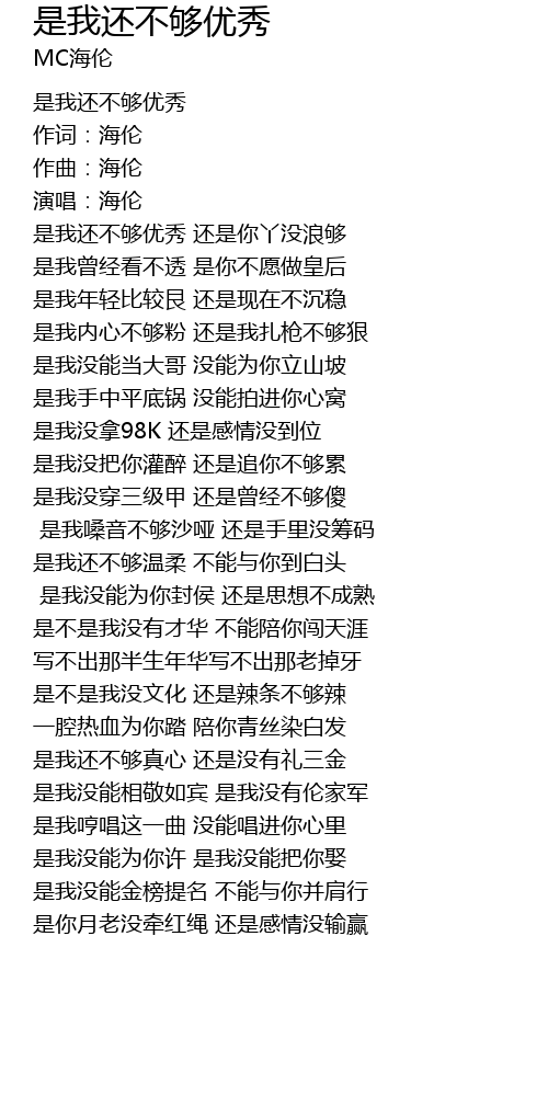 | shì wǒ hái bù gòu yōu xiù hái shì nǐ yā méi làng gòu | |