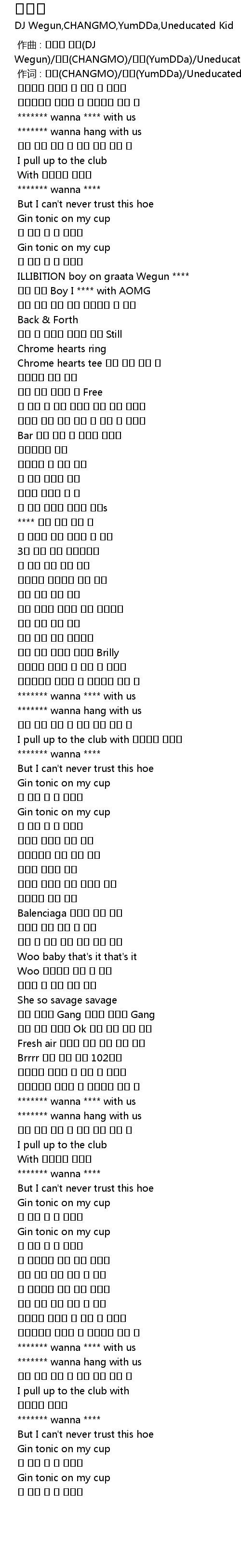 | [00:01.000] | 作词 : 창모(CHANGMO)/염따(YumDDa)/Uneducated Kid |