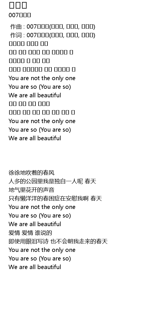 | [00:01.000] | 作词 : 007코리아(이원석, 이지형, 권정열) |