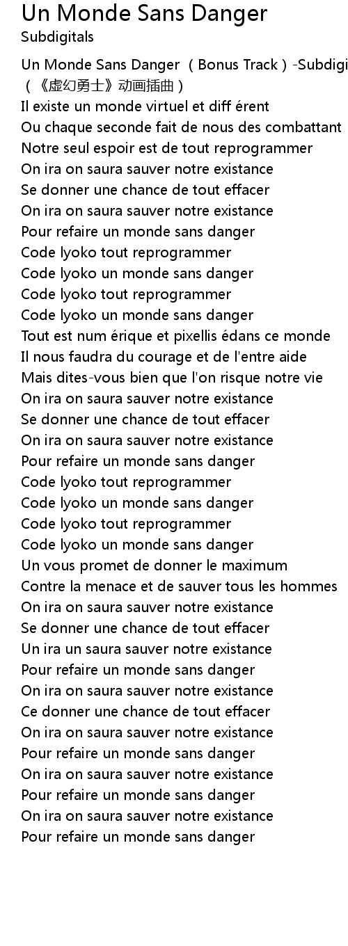 | [00:00.00] | Un Monde Sans Danger Bonus Track Subdigitals |