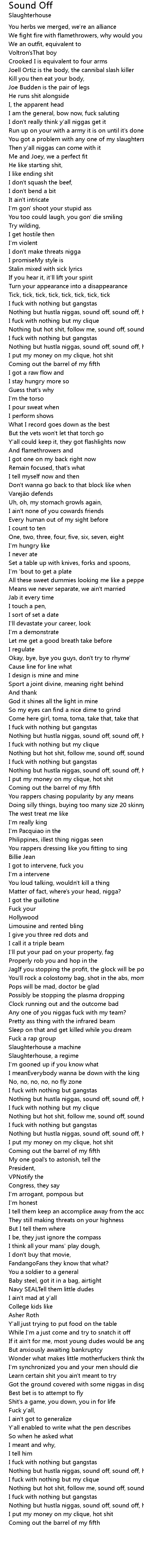 | Nothing but hustla niggas, sound off, sound off, hut | |