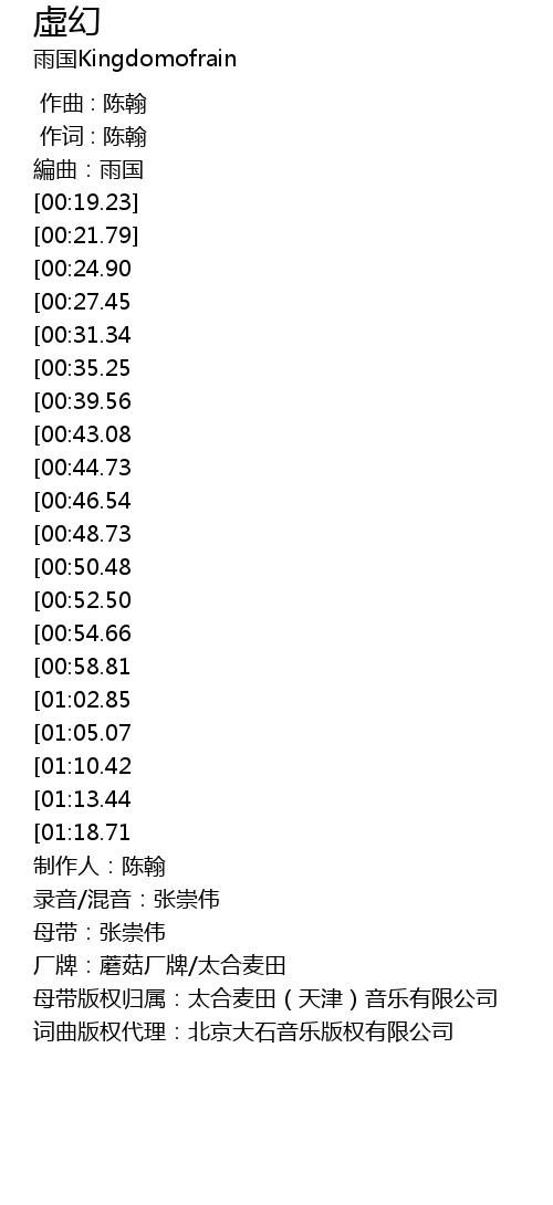 | [02:00.91][00:39.56] | 在虚幻间弥留 |
