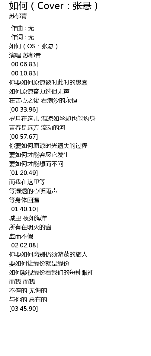 | [01:00.14] | 你要如何原谅时光遗失的过程 |