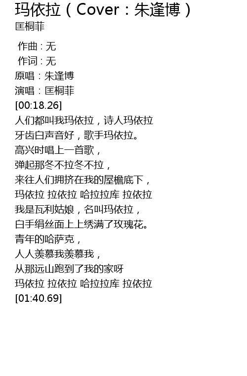 | [00:20.63] | 人们都叫我玛依拉,诗人玛依拉 |