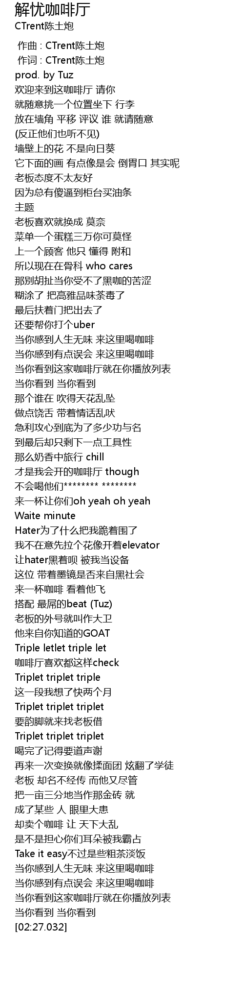 | [00:01.000] | 作词 : CTrent陈土炮 |