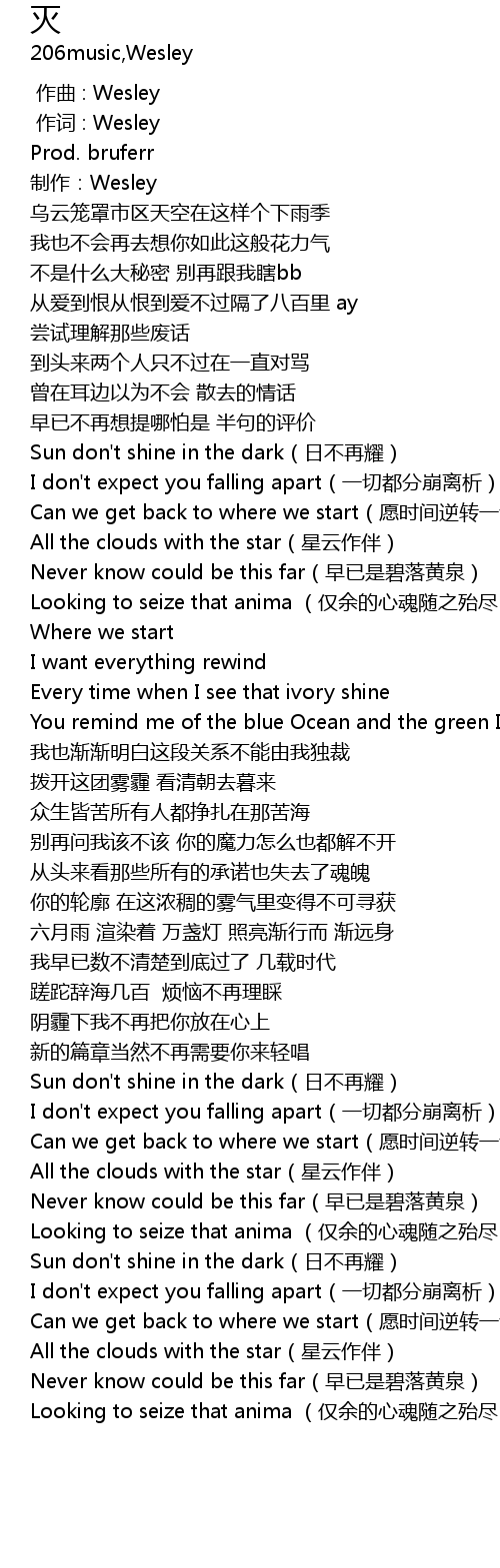 | [00:57.403] | Sun don't shine in the dark(日不再耀) |
