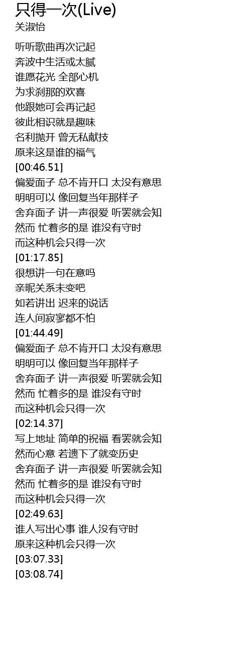 | [00:47.59] | 偏爱面子 总不肯开口 太没有意思 |