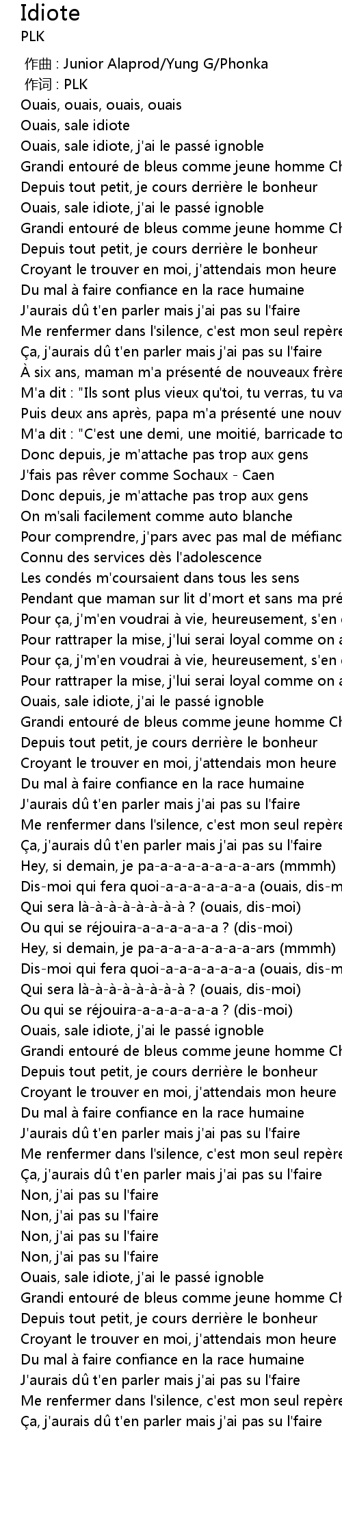 | [01:31.12] | Ouais, sale idiote, j' ai le passe ignoble |