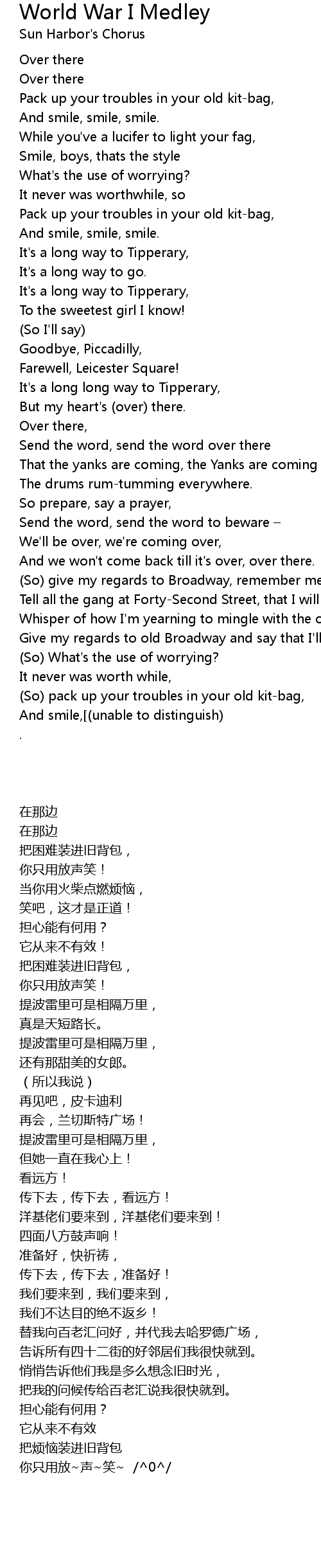 | Song | World War I Medley |