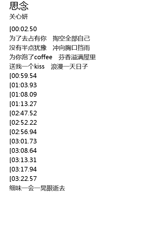 | [00:38.26] | wei ni pao le coffee fen xiang yi man wu li |