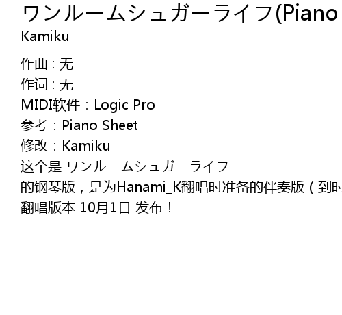 | 这个是 ワンルームシュガーライフ 的钢琴版,是为Hanami_K翻唱时准备的伴奏版(到时候去掉主旋律)。希望大家喜欢! | |