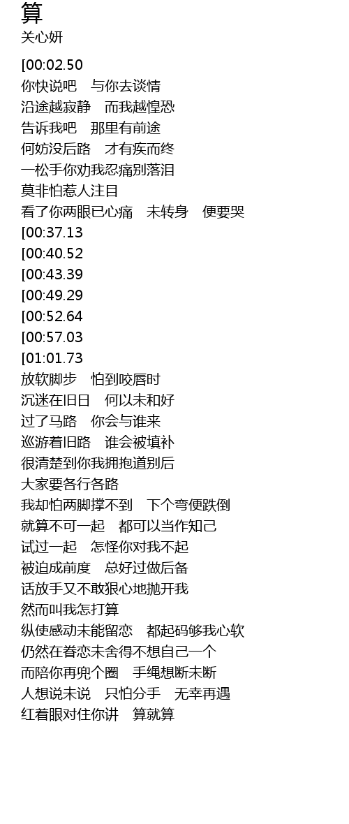 | [01:59.57][01:01.73] | líng luàn dào duì zhù nǐ jiǎng suàn jiù suàn |