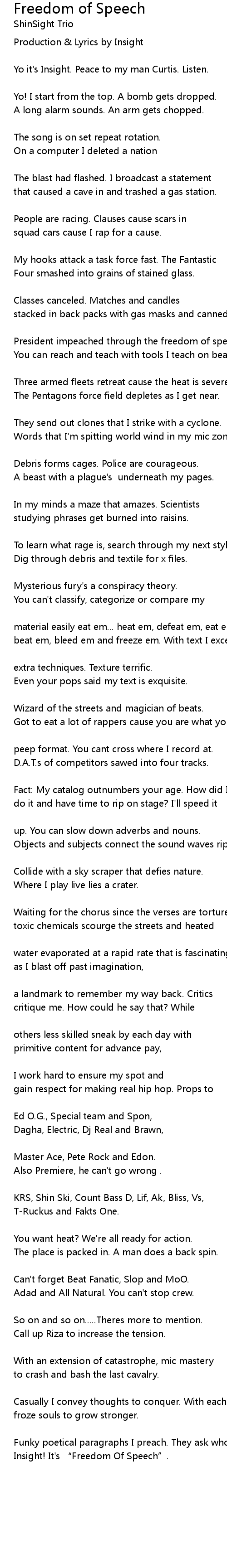| Production Lyrics by Insight | |