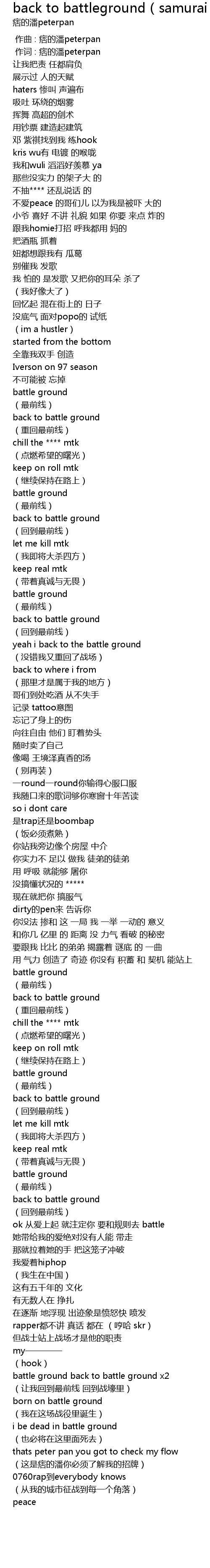 | [00:50.299] | 不爱peace 的哥们儿 以为我是被吓 大的 |