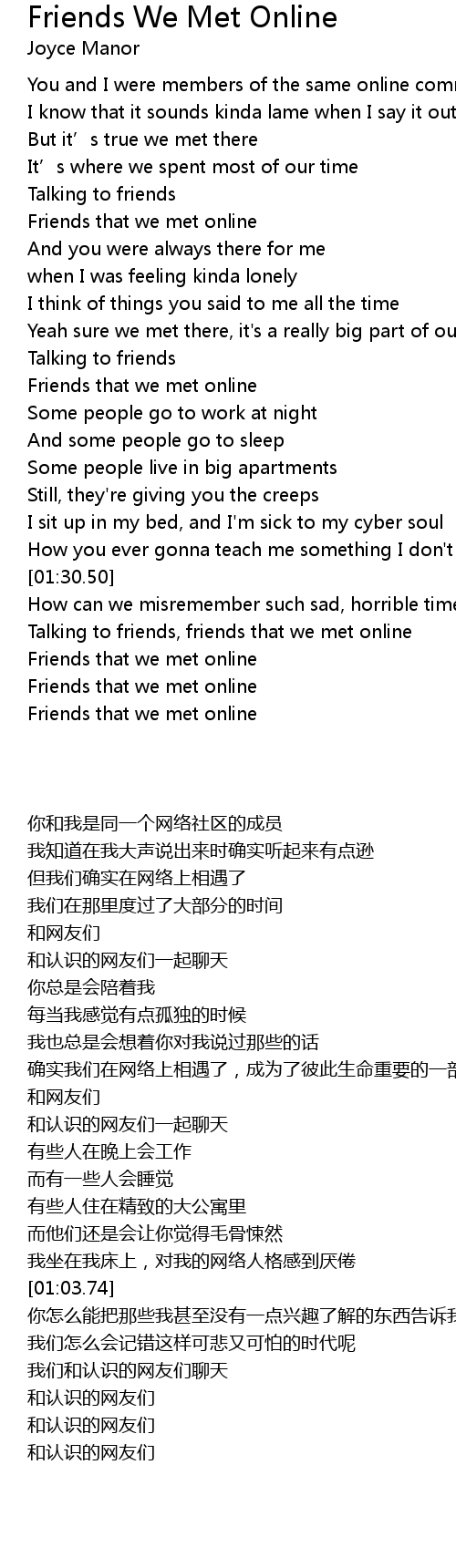 | [01:47.14] | Friends that we met online |