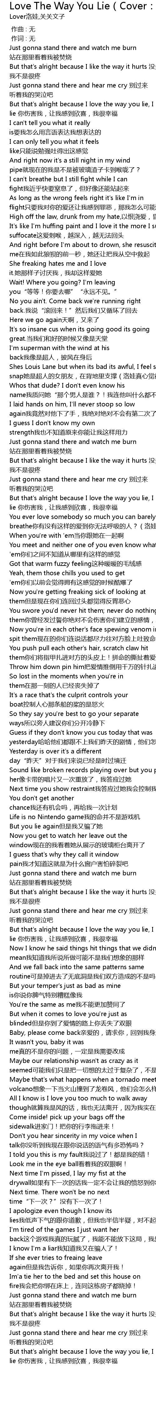 | [01:26.190] | But that' s alright because I love the way you lie, I love the way you lie nǐ shāng hài wǒ, ràng wǒ gǎn dào xīn xǐ, wǒ hěn xìng fú |