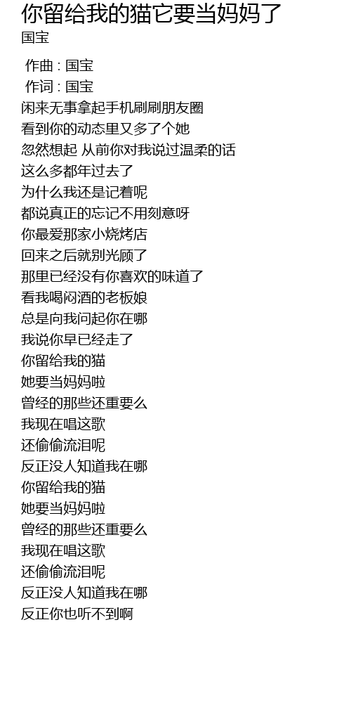| [00:01.000] | 作词 : 国宝 |