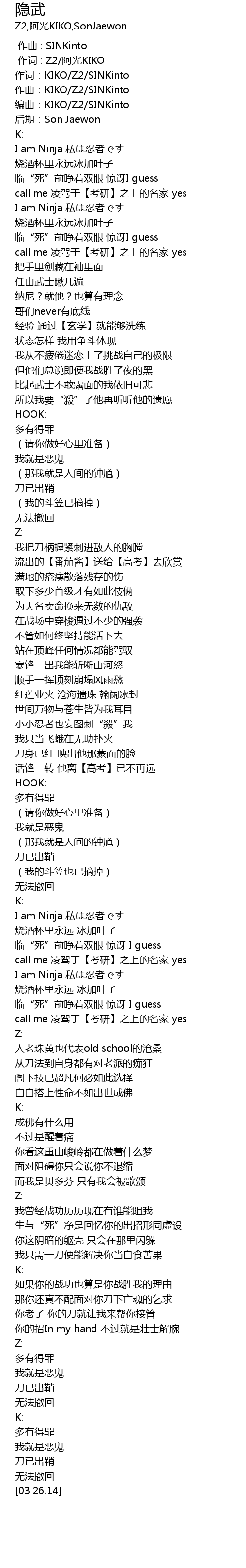 | [02:15.76] | I am Ninja sī rěn zhě |