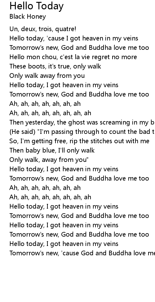 Hello today, I got heaven in my veins |