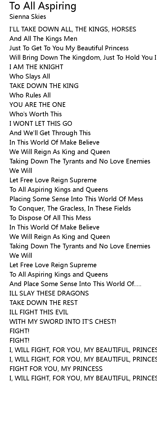 I, WILL FIGHT, FOR YOU, MY BEAUTIFUL, PRINCESS |