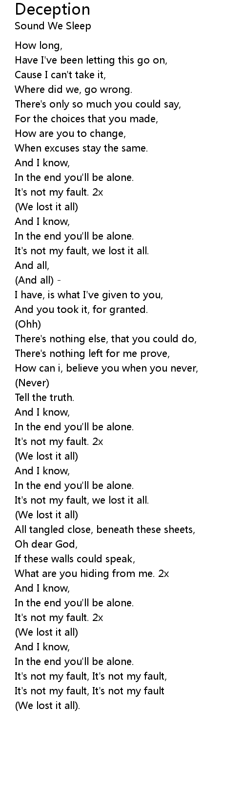 It's not my fault, we lost it all. |
