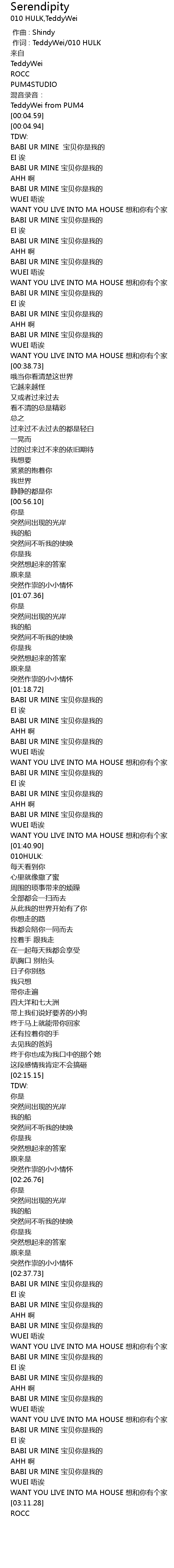 | [03:03.11] | BABI UR MINE bǎo bèi nǐ shì wǒ de |