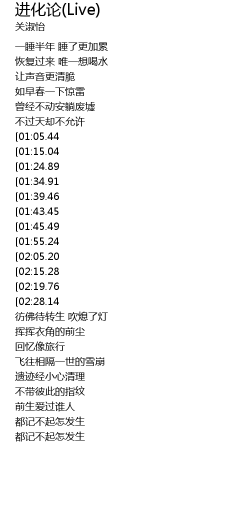 | [03:18.70][01:05.44] | 命不该绝 就应该进化 |