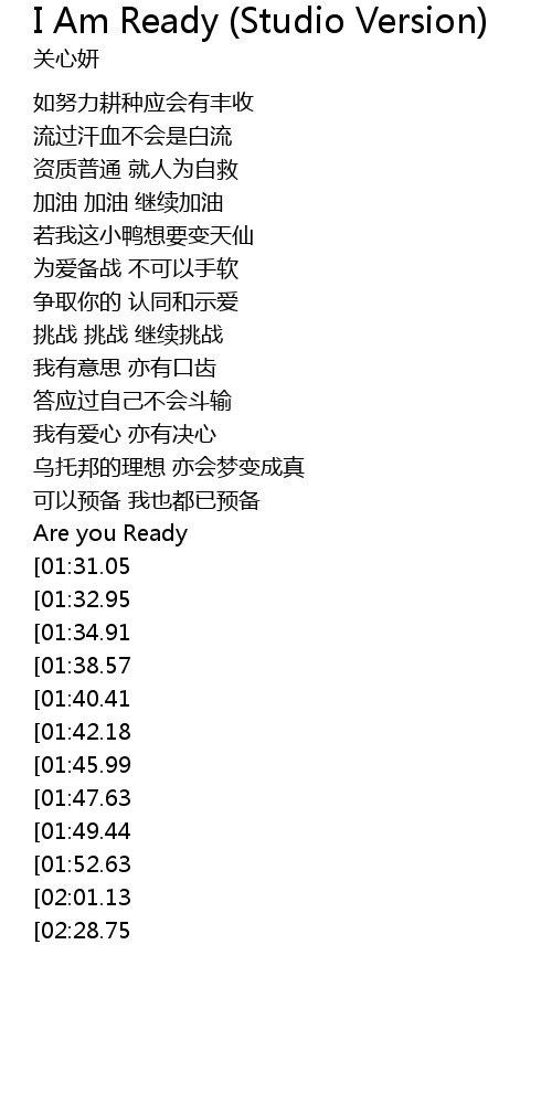 | [02:35.90][02:28.75] | Cuz I' m Ready Ready For love |