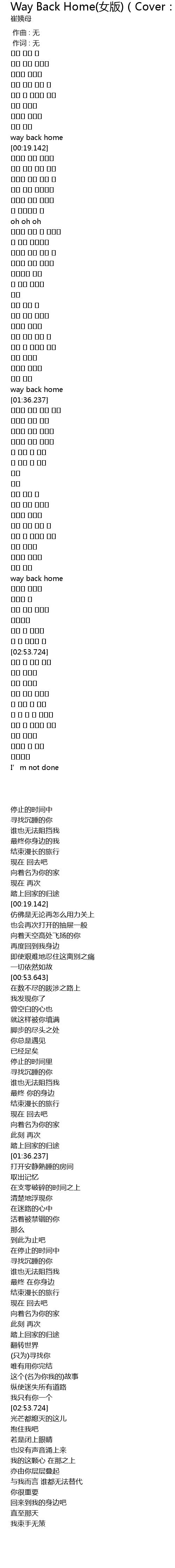 | Song | Way Back Home(女版)(Cover:SHAUN) |