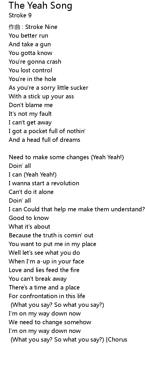 | This needs to change somehow Chorus What you say? So what you say? Chorus |