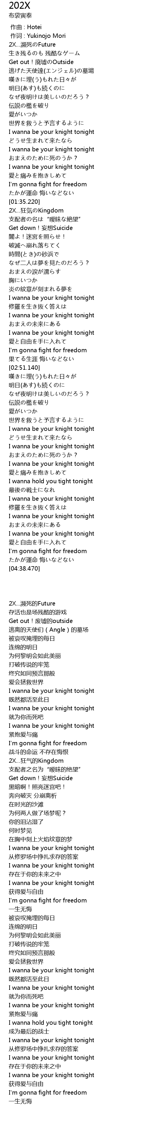 | [01:43.520] | 2X kuáng qì Kingdom |