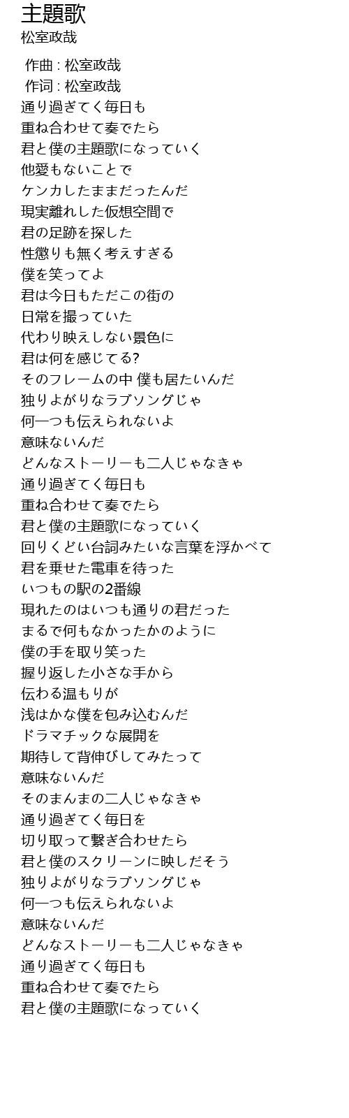 | [00:00.352] | 作词 : 松室政哉 |