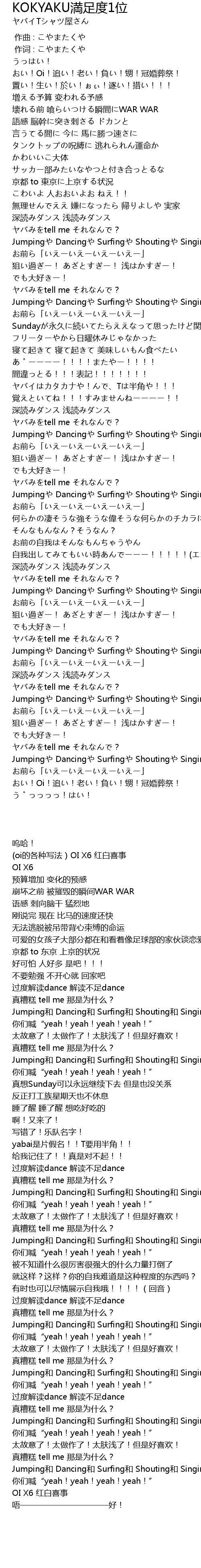 | [02:31.000] | Jumpingや Dancingや Surfingや Shoutingや Singingや |